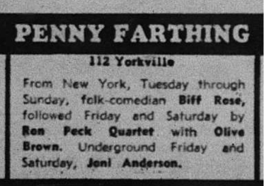 1965.04.23 Joni's next appearance The Dungeon - Downstairs @ The Penny Farthing Toronto, ON