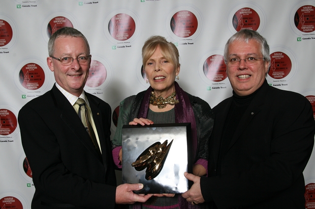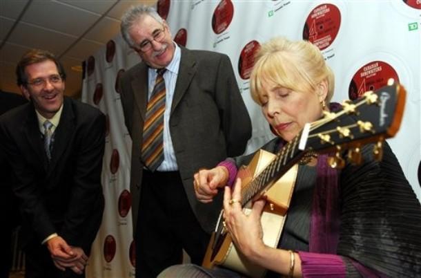 When he was giving his thank-you speech, Ferland said that he was delighted to be here and that he had wanted to meet Joni Mitchell for a long time. He had been seated next to her in the front row. In his delightful French accent, he said, "Zhon-ee Meet-shell" several times, to laughter and applause from the audience.