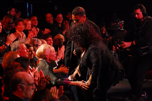 Pat: We were given "Media" passes to room 101 at the Toronto Convention Centre. There we were again amongst the movers and shakers....I could get used to this!! Herbie Hancock stepped up to the small podium and took some questions from the press. In answer to the questions, he said that: she, Joni, was a renaissance of the 21st century. She had the courage to bare her soul to the public. He met Joni when he went to record with Mingus in 1978. He was curious because he didn't know her or her music, and wondered how she would deal with Mingus....but she fitted in with him "like hand in glove". He (Herbie) was happy to be here tonight; he was just back from a long trip in India and not very well rested but he would not have missed this chance to honour Joni. He started to pay attention to lyrics when listening to Joni and it's like the lyrics marinate in his soul. He said "She has set such high bars for songwriting, poetry and painting. She is the best of what a human being has to offer."