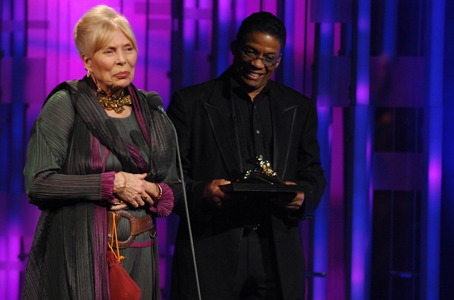 Next, Herbie Hancock came on stage to salute Joni. He said it was his pleasure, that she was an artist and friend whose work and ethic he deeply admires. Before he met her, he was a devout jazz musician, spending too much time in his own ivory tower.