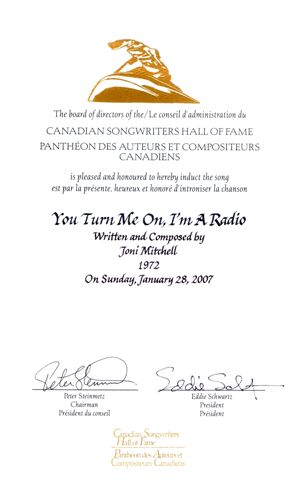 Hall Of Fame Gala. Joni was inducted into the Canadian