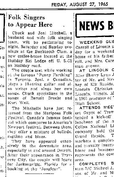 1965.08.29 Joni's next appearance The Buck Tooth Clam Traverse City, MI