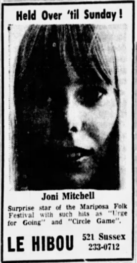 1967.07.01 Joni's next appearance Café Le Hibou Coffee House Ottawa, ON