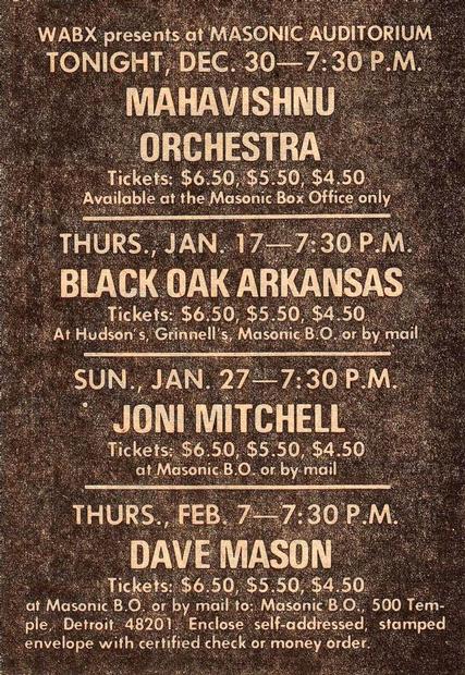 1974.01.27 Joni's next appearance The Masonic Temple Theatre Detroit, MI
