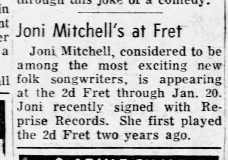 1968.01.19 Joni's next appearance The 2nd Fret Philadelphia, PA