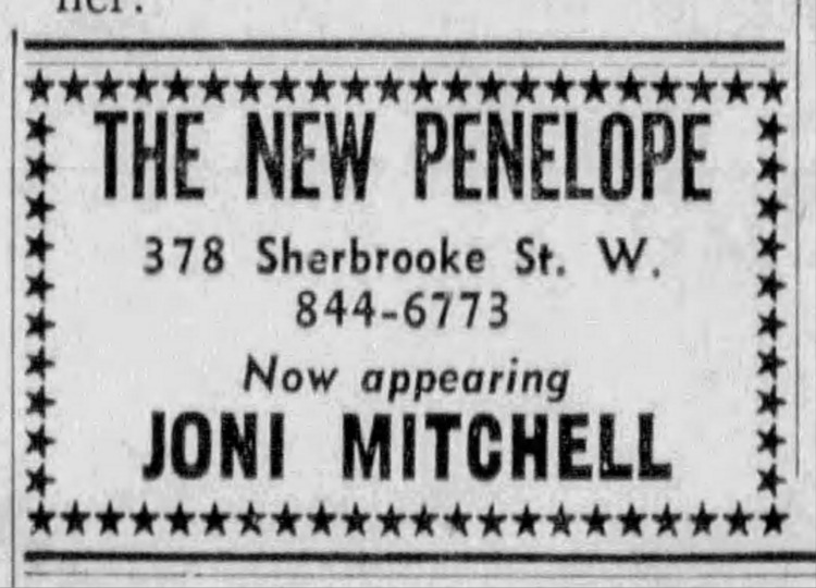 1968.03.30 Joni's next appearance The New Penelope Café Montreal, QC