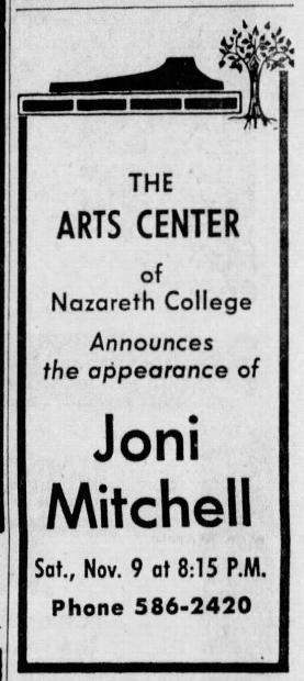 1968.11.09 Joni's next appearance Nazareth College Arts Center Rochester, NY