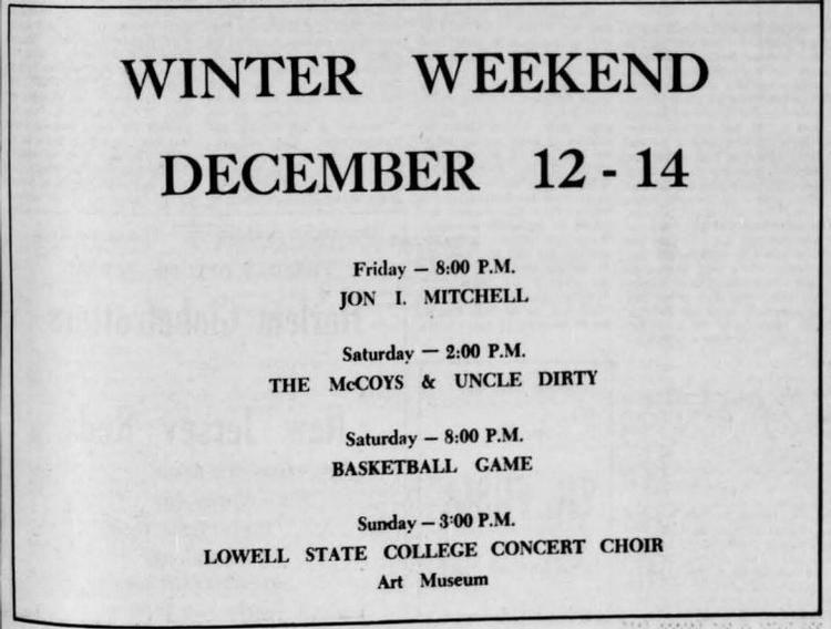 My wife attended this concert at the age of 13, and it was fairly life-altering for her. She remembers the red and green dress as described in the review, and the set list 'sounds right.' She remembers sitting on the floor in front of the front row seats, looking up at the stage, where audience (the kids?) were packed... so close she could pick out the tunings. But here's the thing. She remembers seeing Joni there (or in Worcester) three or four nights running... could this be possible? A budding guitarist herself, she remembers going home, and realizing she needed a pen and paper to write down the tunings Joni was using for the next night... and bringing them back the next night and copying them down as Joni played. .... It could be the trick of memory and one show seemed like three, it was so intense for her... But does anyone else remember this? She is sure she did not see the afternoon concert at Holy Cross the same day, so that's not it.