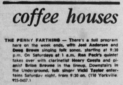 1965.05.08 Joni's next appearance The Dungeon - Downstairs @ The Penny Farthing Toronto, ON