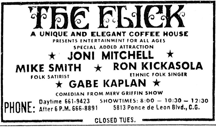 1967.02.04 Joni's next appearance The Flick Coffee House Coral Gables, FL
