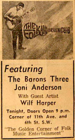 1964.05.01 Joni's next appearance The Folk and Blues Club Calgary, AB
