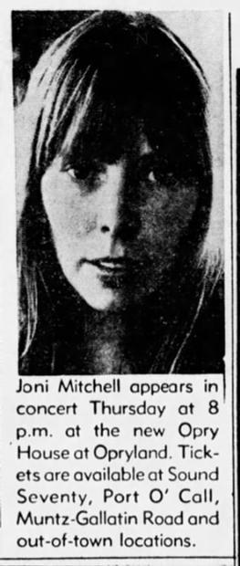 I was there! It was the first non-country concert at the brand-new Grand 'Ole Opry House in Nashville. It was back in the day before you could buy tickets everywhere. We heard that she was going to be there and when the tickets went on sale. We showed up in front of the Festival Tickets office on West Avenue at 6am. We were the first in line! We waited three hours until they opened. Went went in and got front row center seats!
