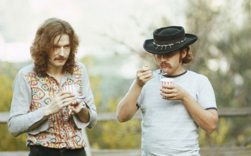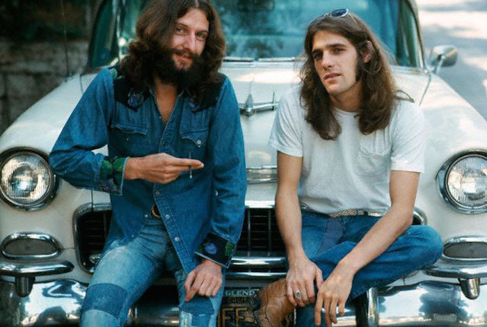 August 1973– Glenn Frey of The Eagles and a record promoter dude named Paul Ahern (buddies and roommates at the infamous “Kirkwood Casino and Health Club,” a named bestowed on their non-stop party pad ), sitting on the hood of Frey’s 1955 Chevrolet Bel Air. The Eagles were the most popular band of the 1970s largely thanks to Ahern, a promoter for their record company who relentlessly and effectively pounded key radio stations in the major markets across the country getting them to play Eagles’ singles over and over and over and over.